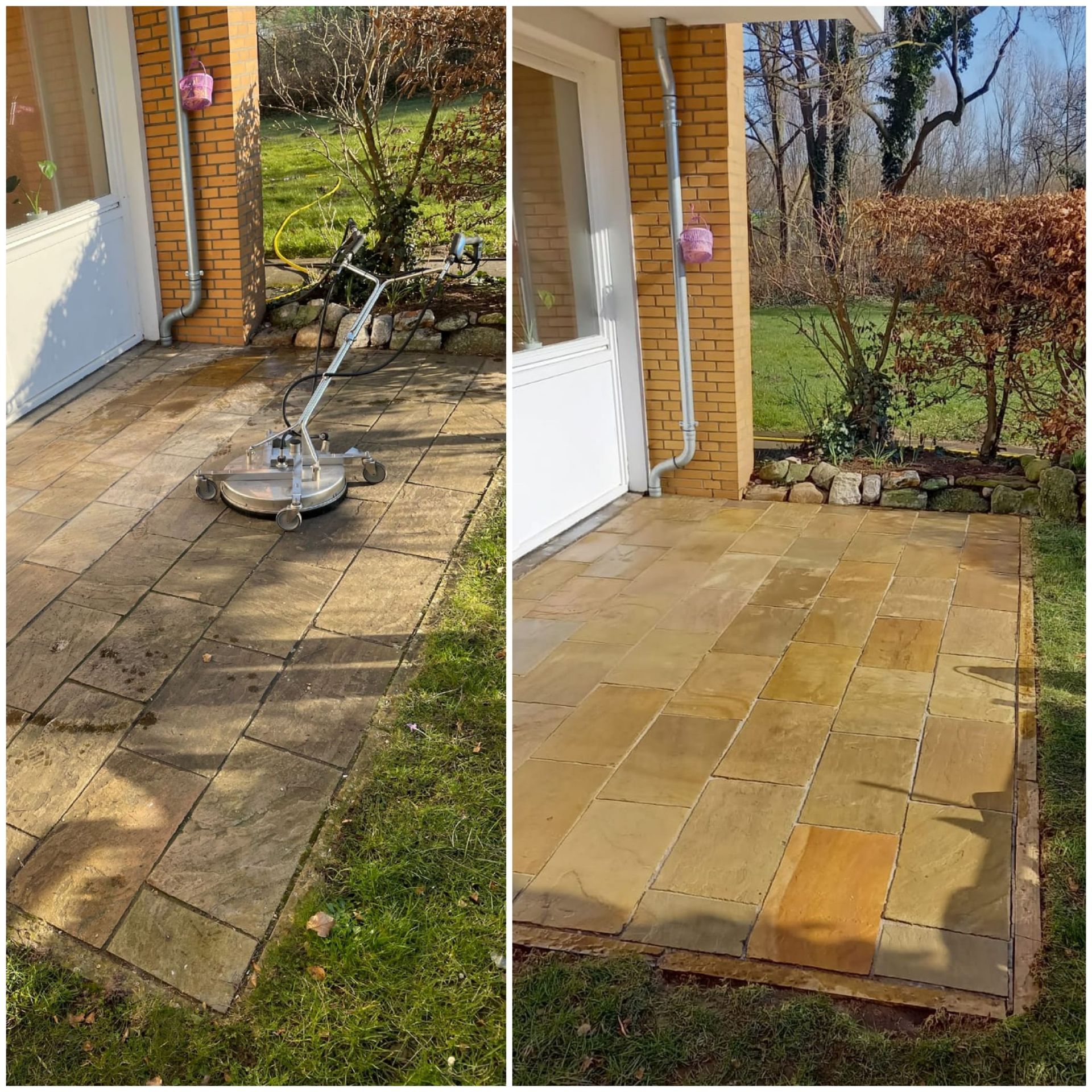 Schonende Heißwasser-Reinigung für sichtbar saubere Steinflächen – ohne Chemie, aber mit maximaler Wirkung. Anschließend sorgen Imprägnierung und neue Fugen für langanhaltenden Schutz und dauerhaft schöne Ergebnisse.